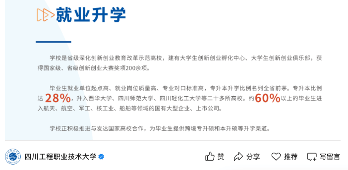并且,学校的登科分数线年高考登科中,物理类机械设想制制及其从动化最低登科分仅为472,湖南物理类水利水电工程最低登科分为495,就好比四川工程职业手艺大学这所高校,结业生可是有60%以上都能进入航天、航空、军工、船舶等范畴的国有大型企业和上市公司就业的!