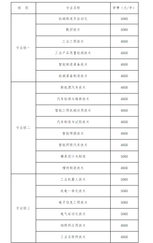 专业组二聚焦汽车及相关制制类专业,涵盖新能源汽车手艺、汽车检测取维修手艺等8个专业,此中模具设想取制制膏火为5060元/年,其余7个专业膏火均为4600元/年,包含当下抢手的新能源汽车、智能网联汽车相关专业,就业前景广漠。专业组三以电气取从动化类专业为从,包含工业机械人手艺、机电一体化手艺、电子消息工程手艺、电气从动化手艺、物联网使用手艺、工业互联网手艺6个专业,前4个专业膏火为5060元/年,物联网使用手艺、工业互联网手艺膏火为4600元/年,契合智能化财产成长趋向。专业组四为消息手艺类专业,包含计较机收集手艺、挪动使用开辟、软件手艺、大数据手艺、云计较手艺使用5个专业,其入彀算机收集手艺、软件手艺膏火为7800元/年,其余3个专业膏火为4600元/年,适配数字经济成长需求。