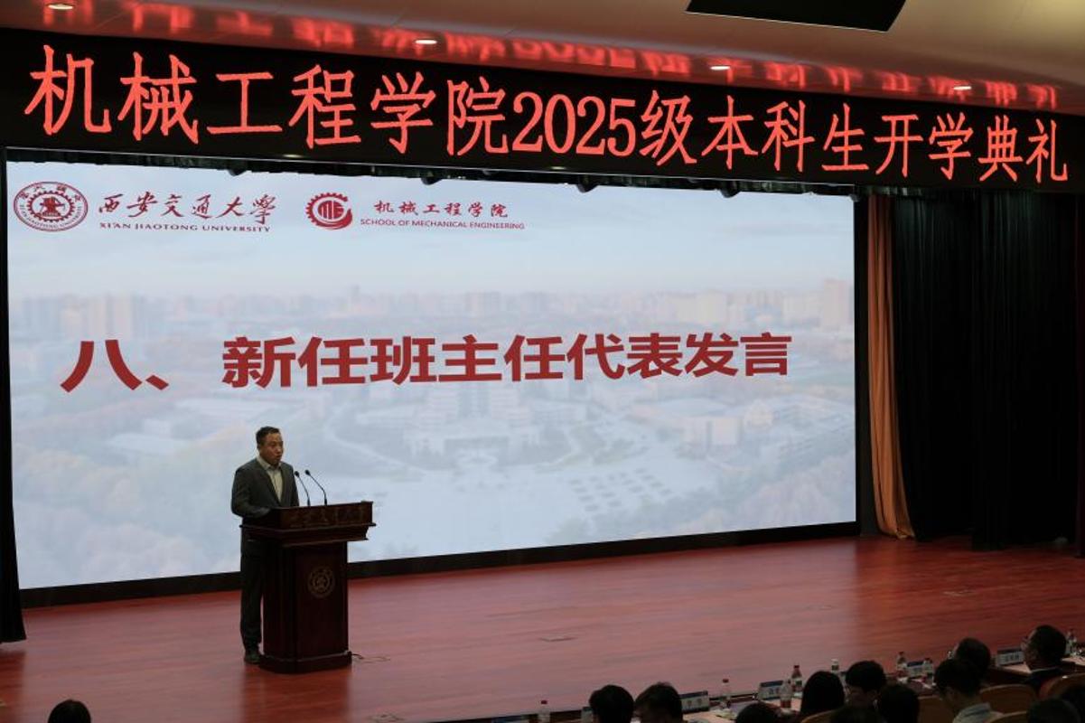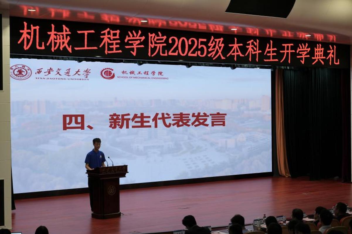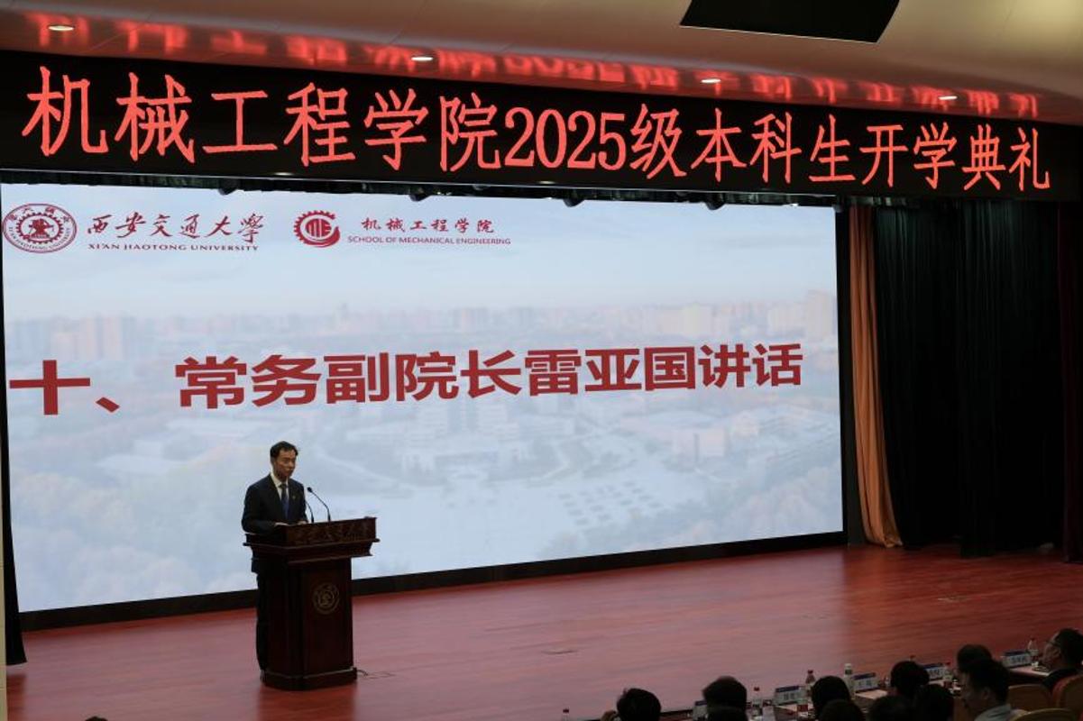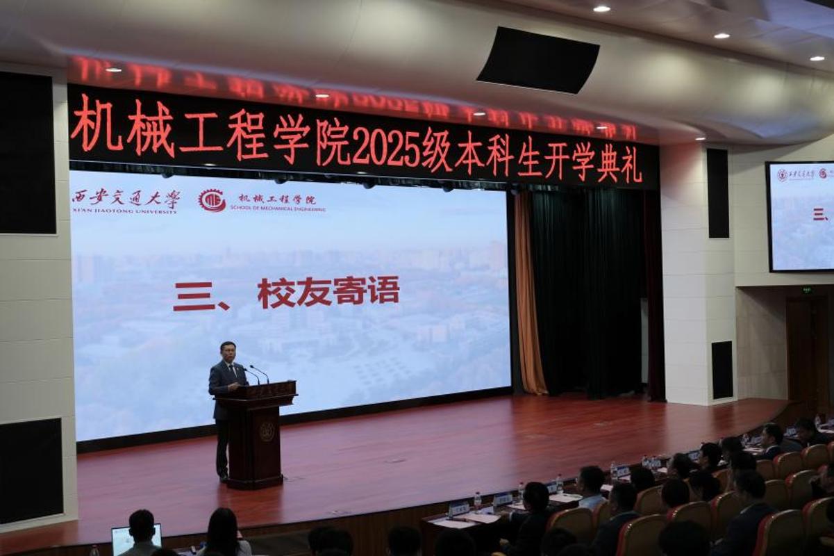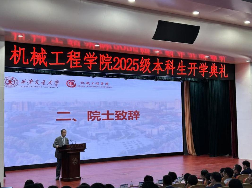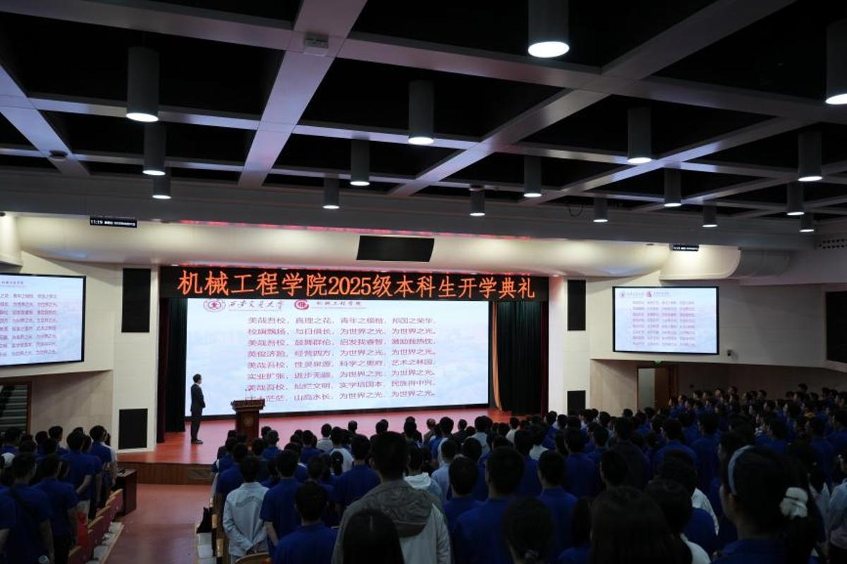 9月7日上午,西安交通大学机械工程学院2025级本科生开学仪式暨开学第一课正在兴庆校区从楼多功能演讲厅举行。472名来自世界各地的机械学子齐聚一堂,